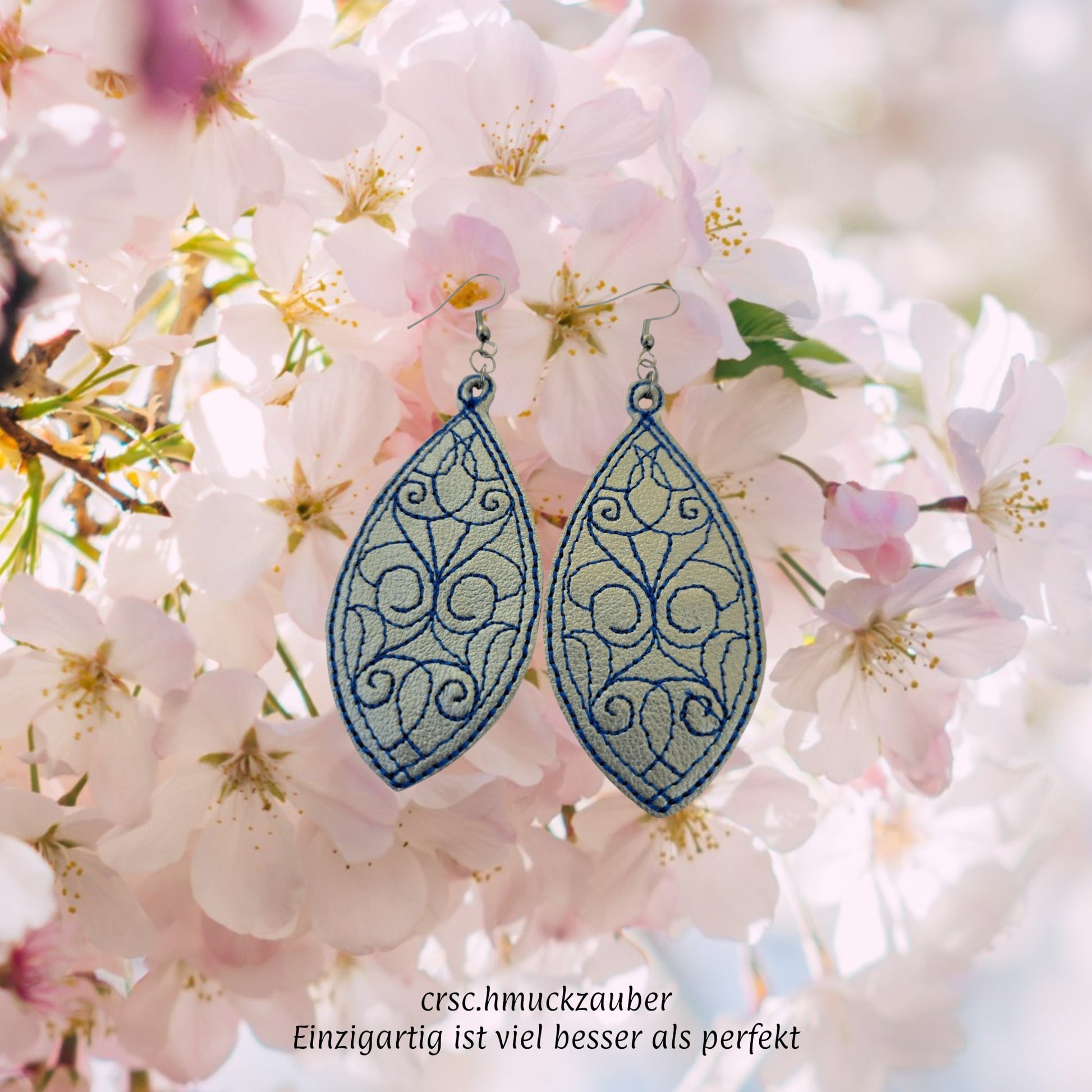 Gestickte Ohrringe Tropfen Kunstleder
